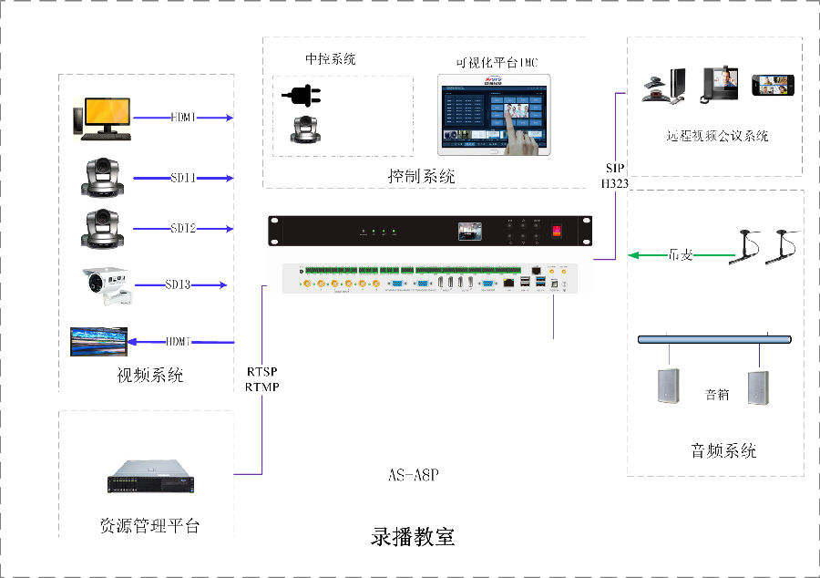 中控、音频、视频一体化可视化应用,部署方便、使用灵活、维护简单。