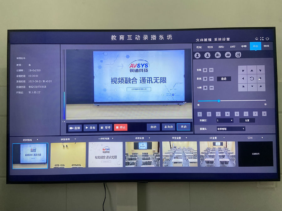 项目包含:本项目共建设1个录播教室,使用1台ng28(南宫)科技(AVSYS)多媒体综合管理一体机,实现统一控制管理,音视频调度,会议室互动等应用。