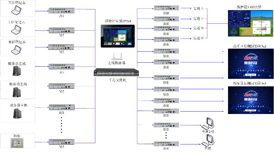 2.分布式中控、音频、视频一体化应用。部署方便、使用灵活、维护简单。