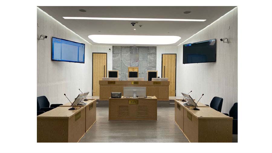 根据案件庭审情况,进行实况当庭展示和播放,确保案件法庭外的公告展示