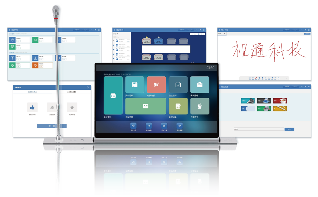 电子桌牌 | 会议签到 | 议题管理 | 资料管理 | 资料同屏 | 会议白板 |