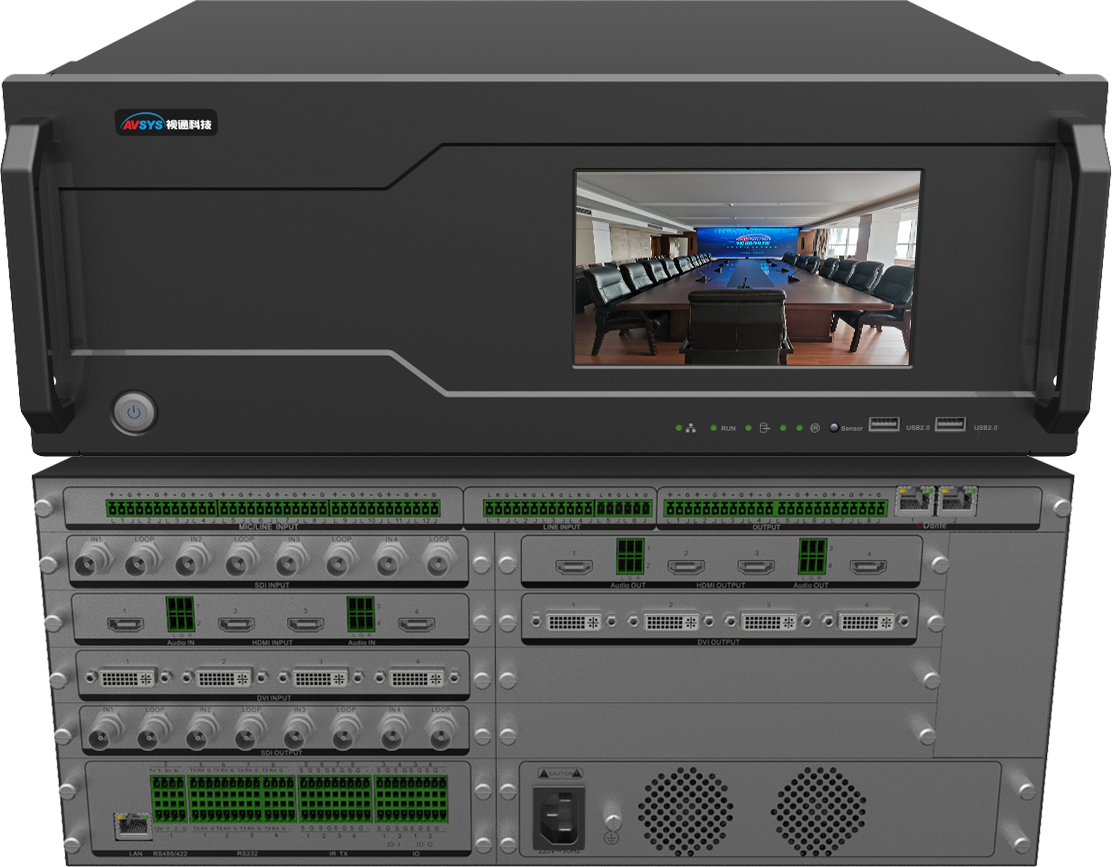提供HDMI/DVI/SDI/HDBaseT/VGA/光纤多种板卡选配,具有字幕/EDID/HDCP/单图层拼接/多画面合成等功能